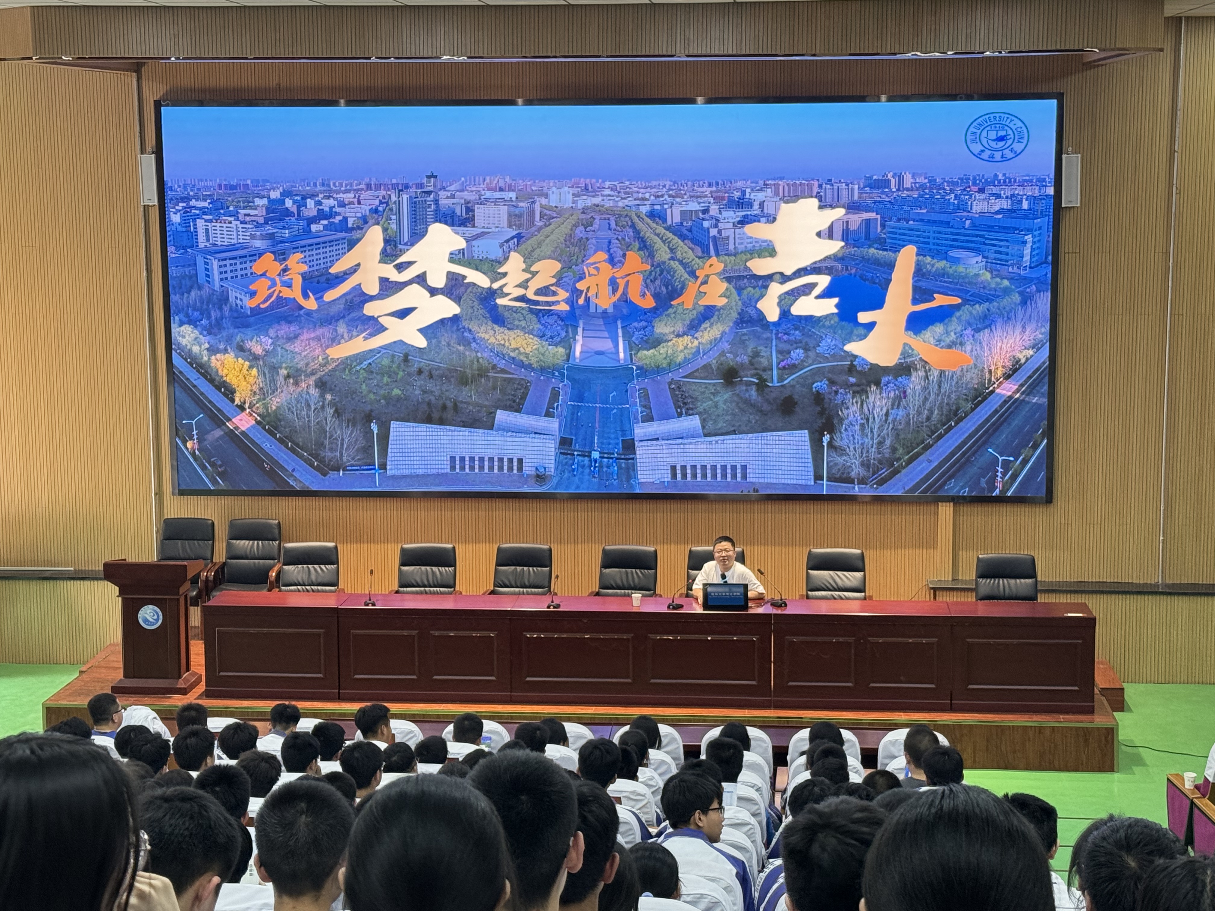 宣讲团成员任瑞波教授以“筑梦起航在吉大”为主题展开宣讲,介绍吉林大学的强劲实力和深厚底蕴,优势学科专业和创新人才培养体系,学生发展深造和就业以及丰富的校园生活等内容。