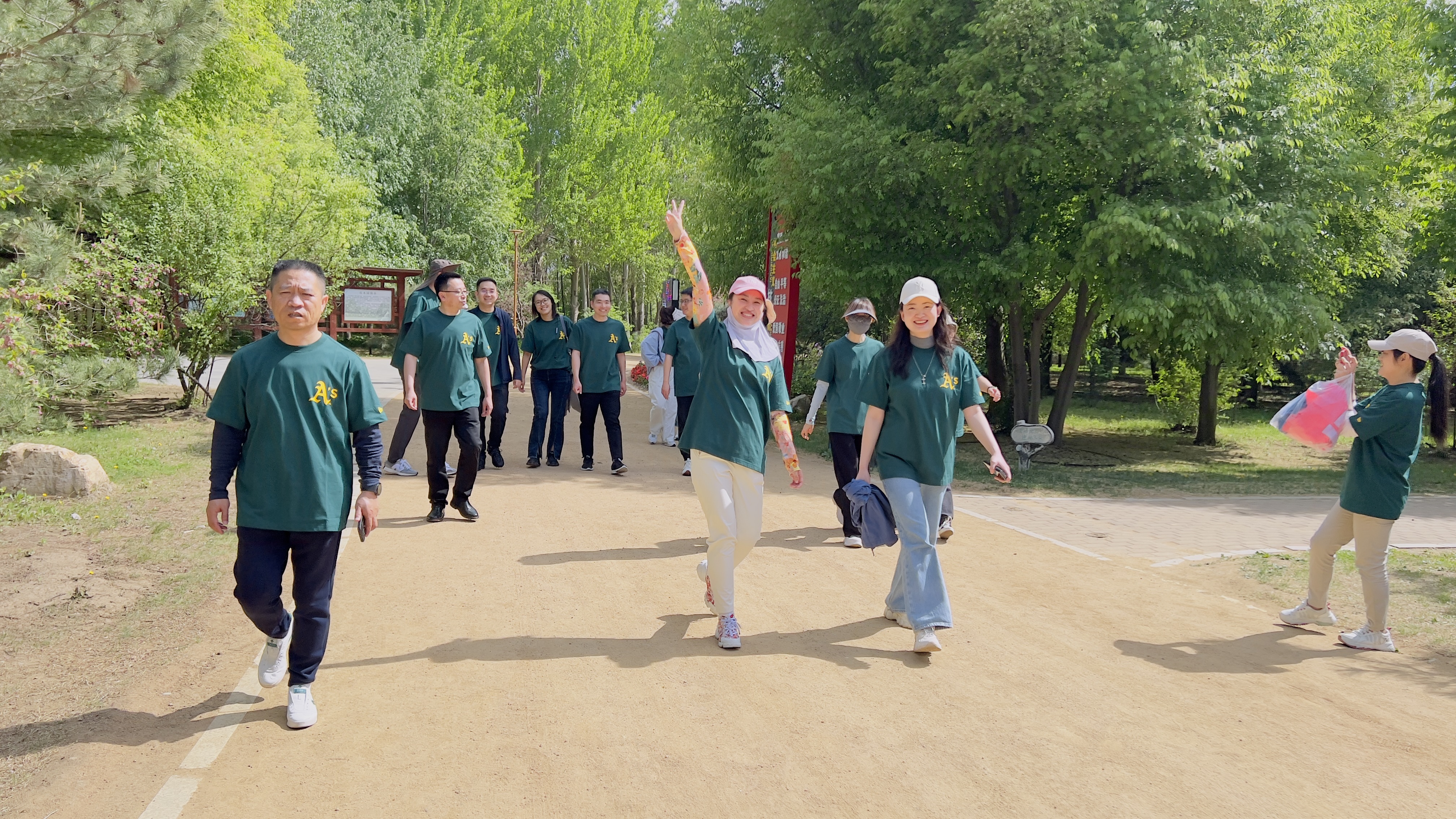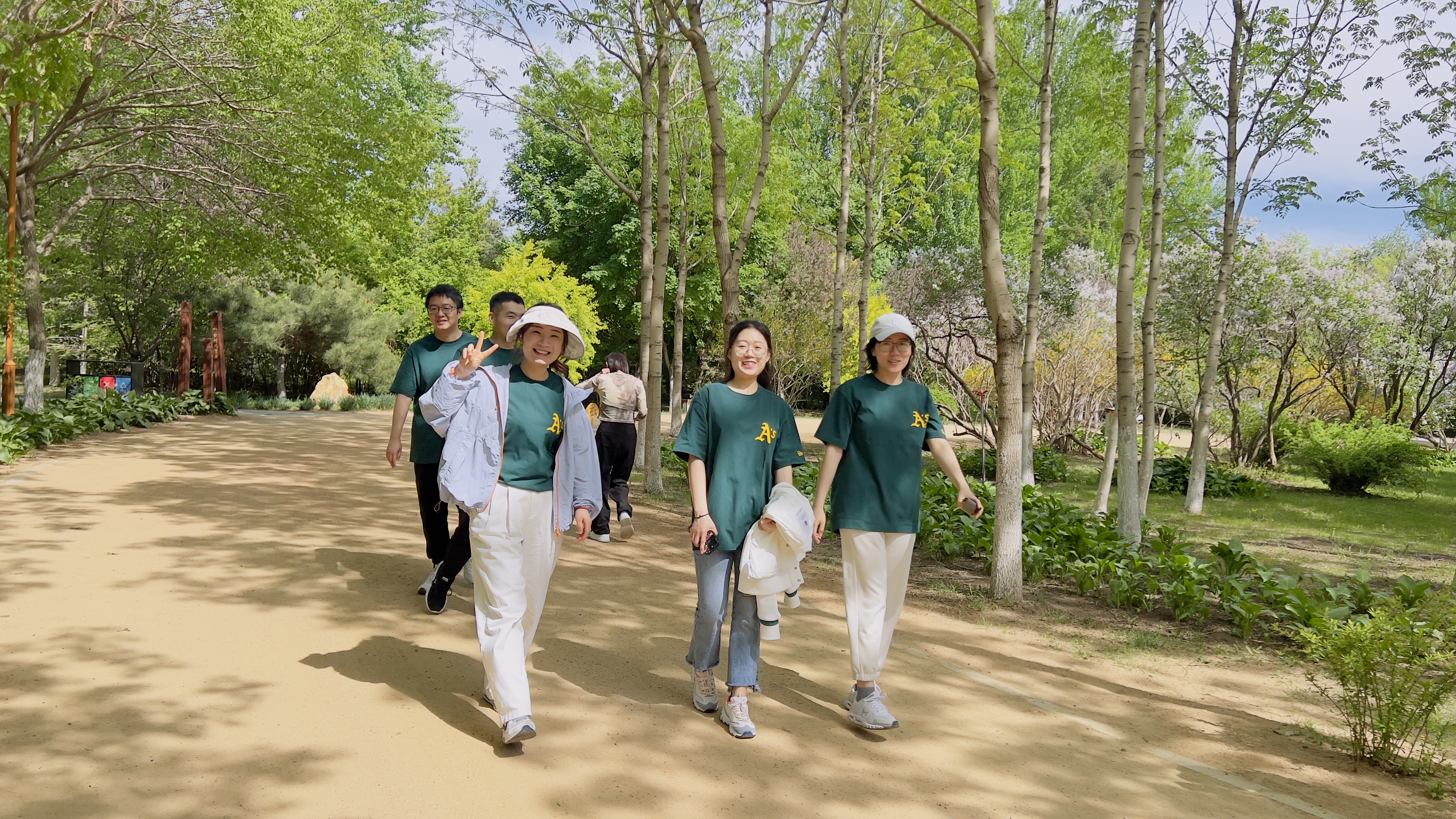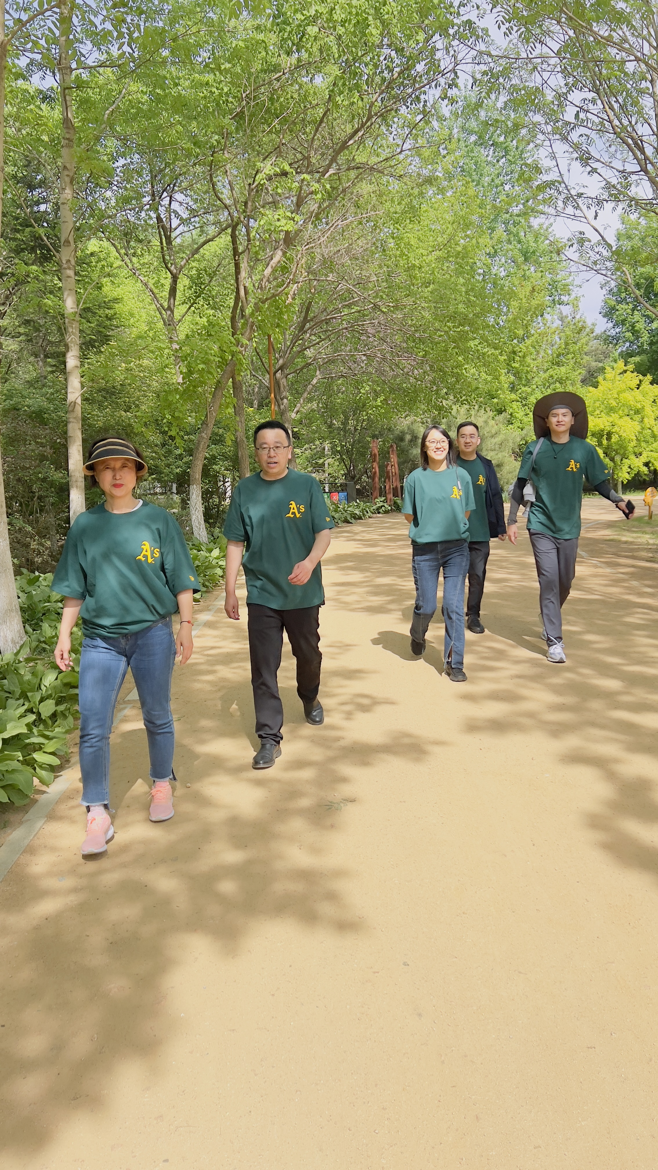 老师们从正新楼出发,一路步行至百木园,大家顺着园内小路漫步前行,一边欣赏着沿途美景,一边亲切交流相谈甚欢,时而驻足拍照,时而健步如飞,欢声笑语弥漫在清新的空气中。
