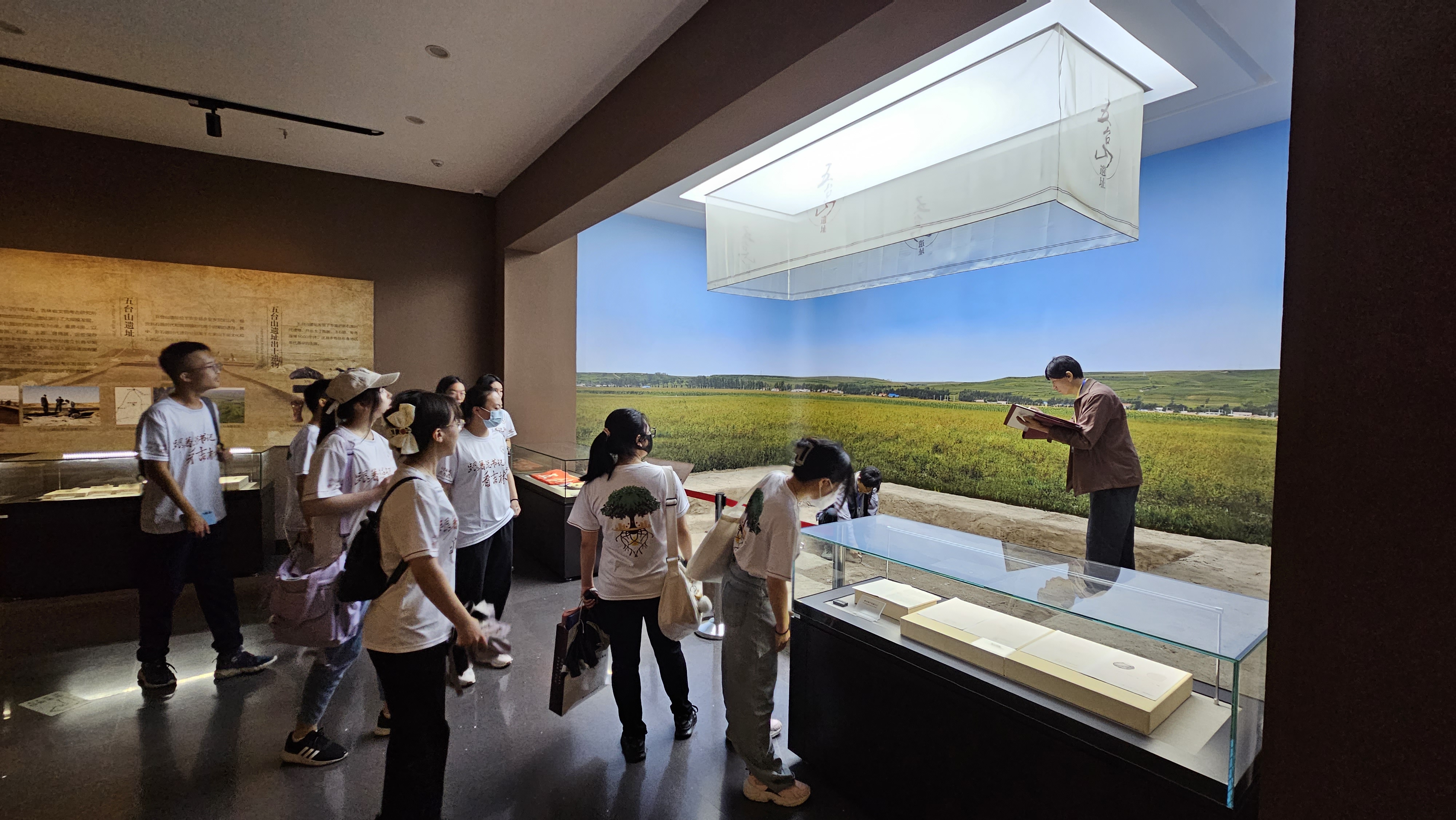 长春博物馆是地标建筑“城市之花”三朵盛开的姊妹花之一,是长春对外文化交流的重要窗口。丰富的馆藏文物是文明兴盛迭代的见证者,承载了宝贵的历史信息,具有客观真实的历史价值。团队成员走进长春博物馆《溯源长春——长春早期文明展》,见证长春先民如何在这片土地上创造独特而又辉煌的早期文明,在对文物的感知中体悟厚重的沧桑岁月,从博物馆学专业角度分析展览阐释模式,将专业知识与实地调研融会贯通,形成对于长春历史底蕴与早期成就的整体认识,在历史的悠久回音中激荡出对长春故事的探索之愿,铭刻独一无二的长春记忆。