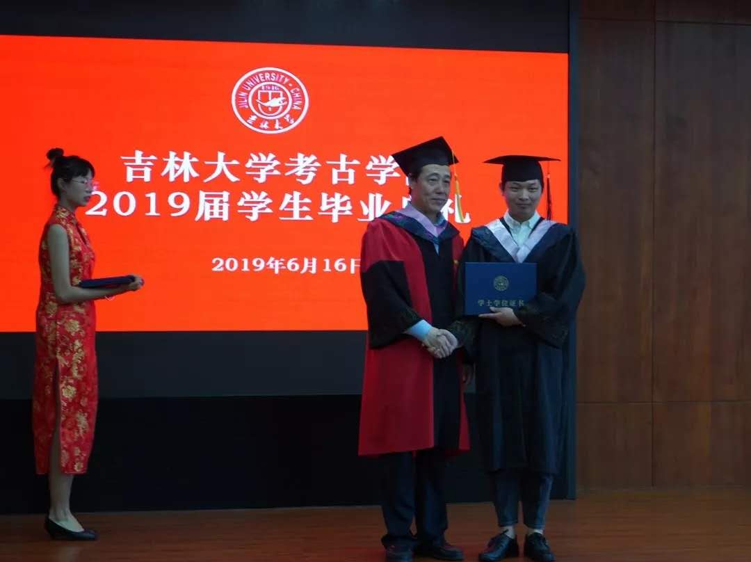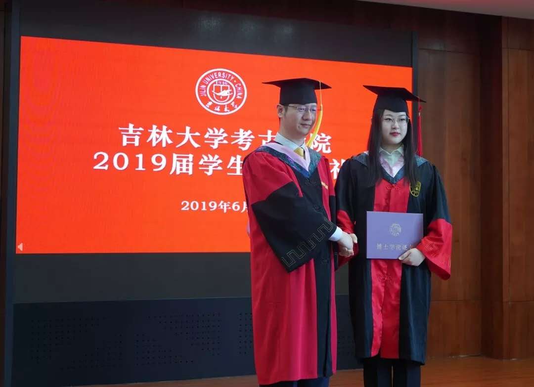 吉林大学学位委员会历史学分委会副主席段天璟教授和吉林大学学位委员会历史学分委会委员王立新教授,共同为全体毕业生颁发学位证书、行拨穗礼。全体毕业生秩序井然,依次上台接受拨穗礼,并与两位教授深情握手,合影留念。