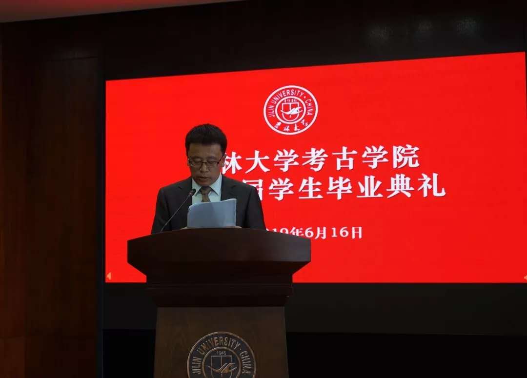 向获得学士、硕士、博士学位的全体毕业生表示祝贺,向他们的家长和亲人表示敬意,向为毕业生成长成才默默付出的全院教职员工表示感谢。并对全体毕业生提出五点期望。第一,常怀感恩之心,结草衔环,饮水思源。第二,保持进取之心,脚踏实地,追求卓越。第三,坚守责任之心,勇于奉献,敢于担当。第四,拥有豁达之心,热爱生活,宽容自信。第五,凝聚团结之心,携手校友,相向而行,共同推动吉林大学考古学科走向世界、走向一流。