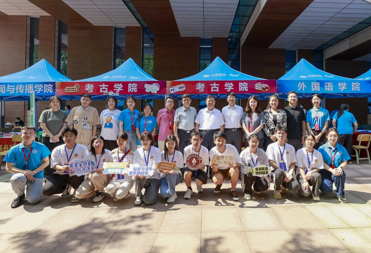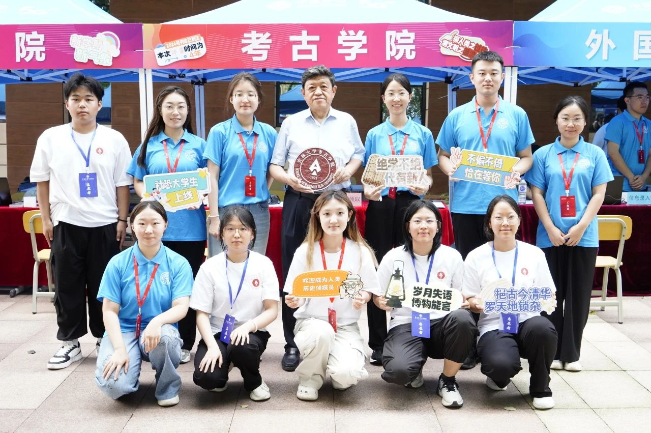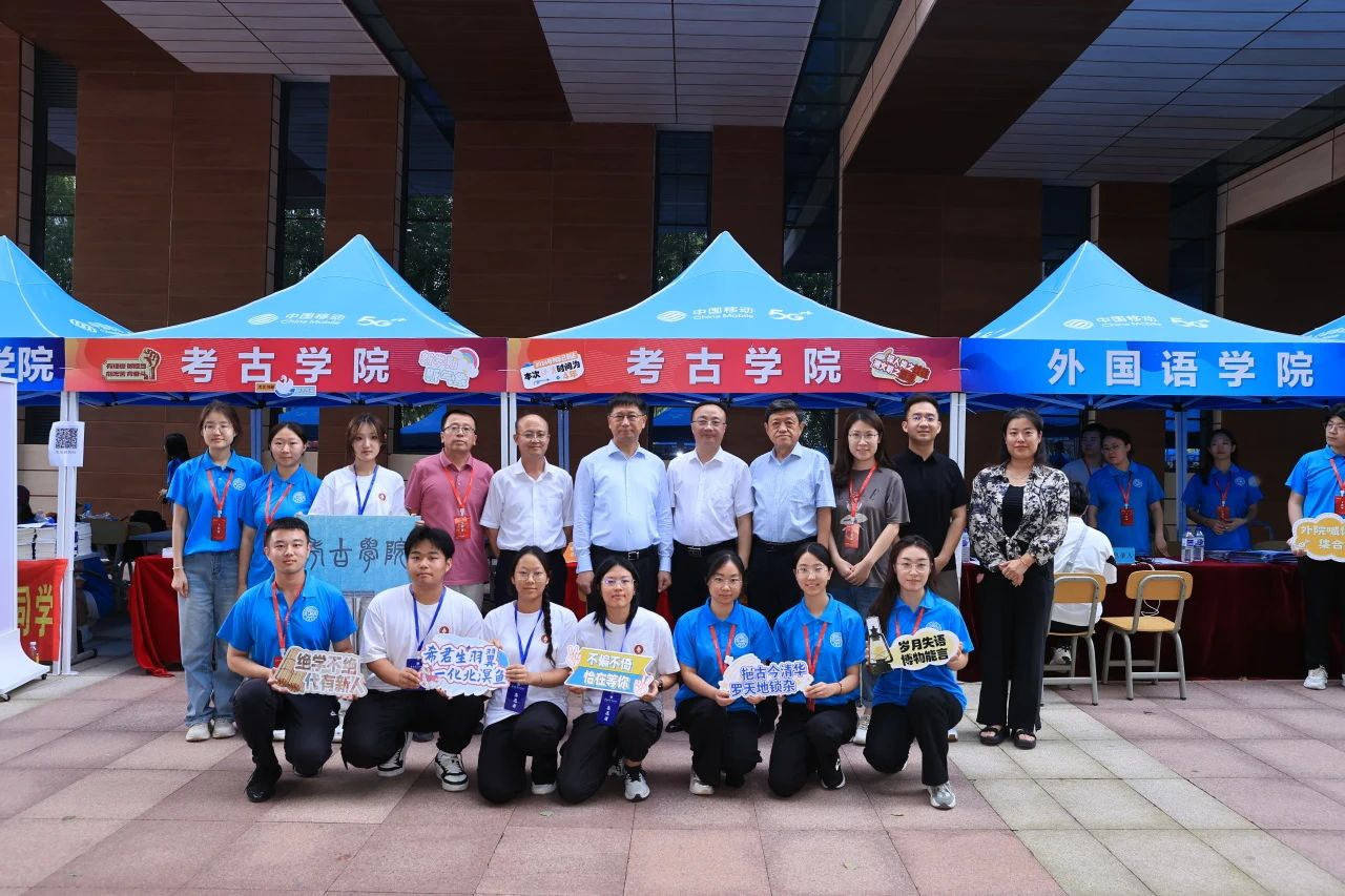 迎新现场,了解我院迎新工作进展,热情欢迎新同学的到来,慰问迎新工作人员和志愿者,并与大家合影留念。