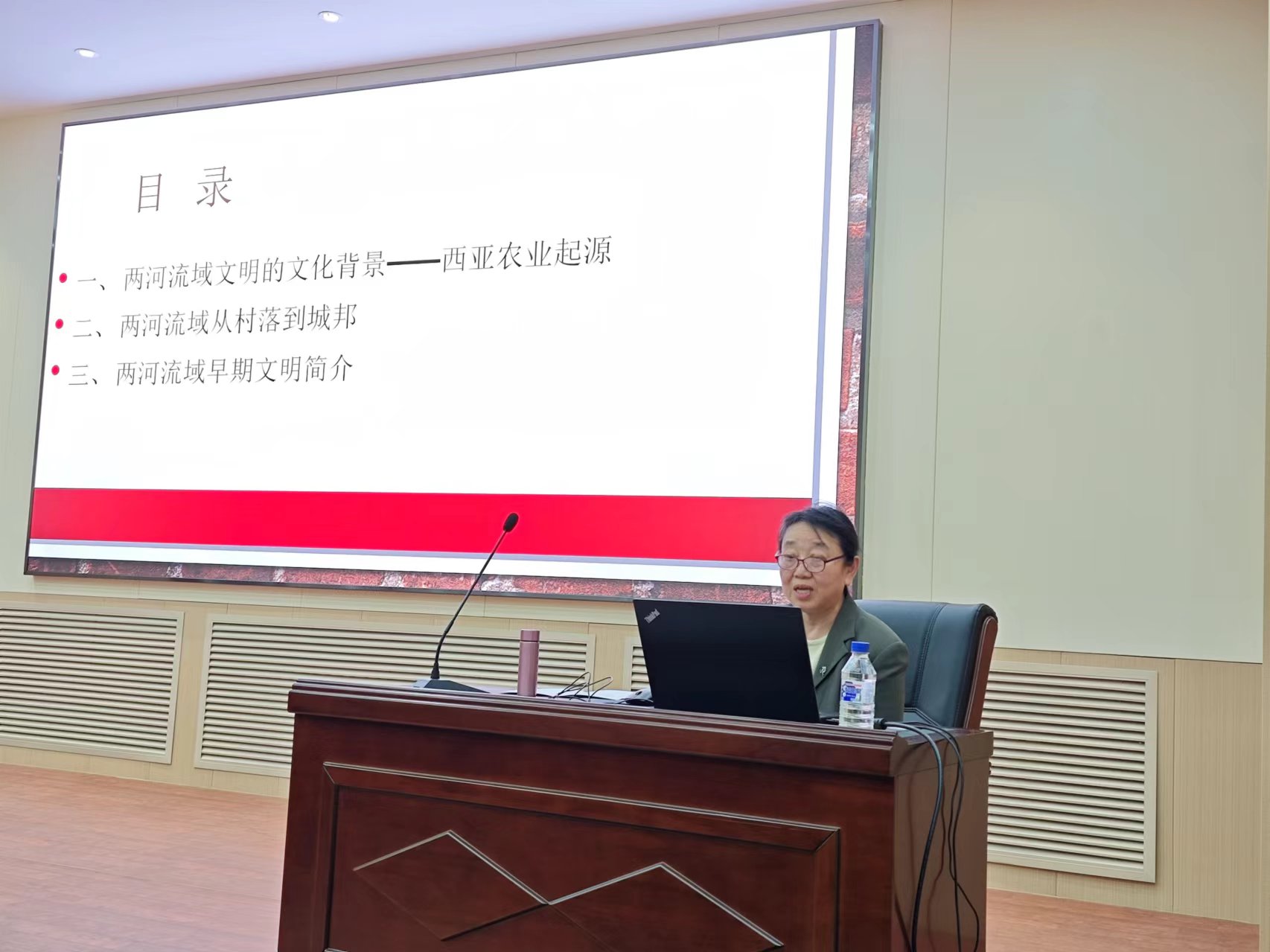 聘任仪式结束后,杨建华教授做了吉林大学“银龄讲习计划”系列考古专题讲座第一讲:“两河流域文明起源”。讲座从西亚农业起源、两河流域从村落到城邦、两河流域早期文明简介三个方面,阐述了两河流域不同的考古学文化、两河流域文明的产生、对欧洲文明的影响及与中国考古学文化的异同等。讲座内容丰富,启发了听众对早期文明互鉴的思考,在师生热烈的掌声中结束。