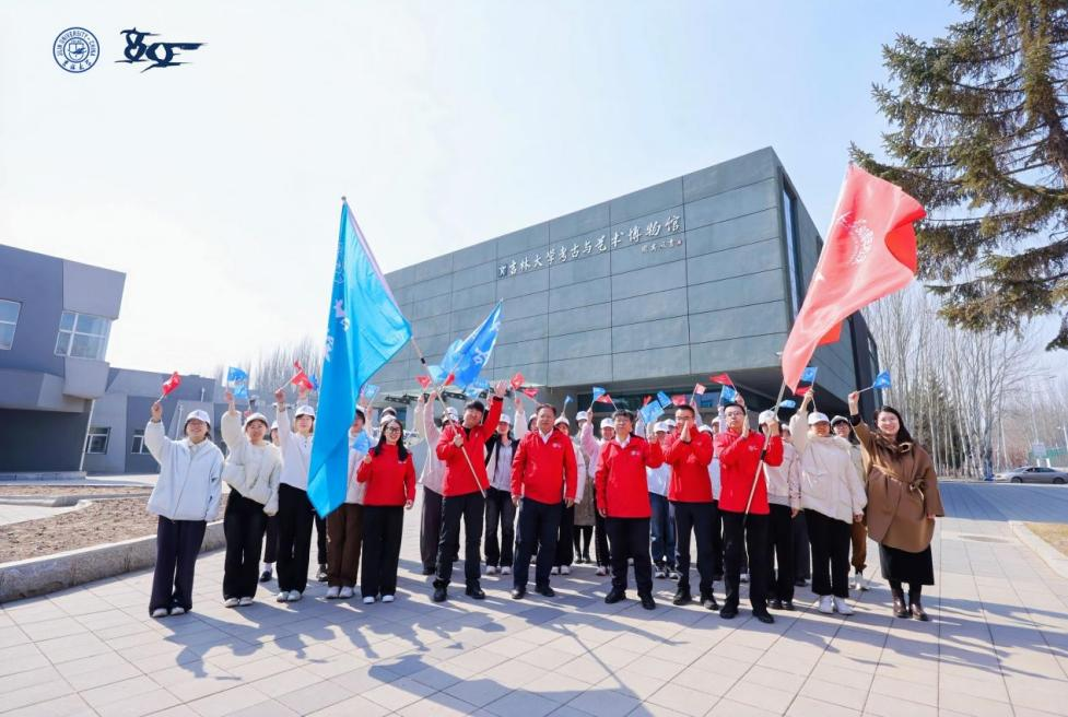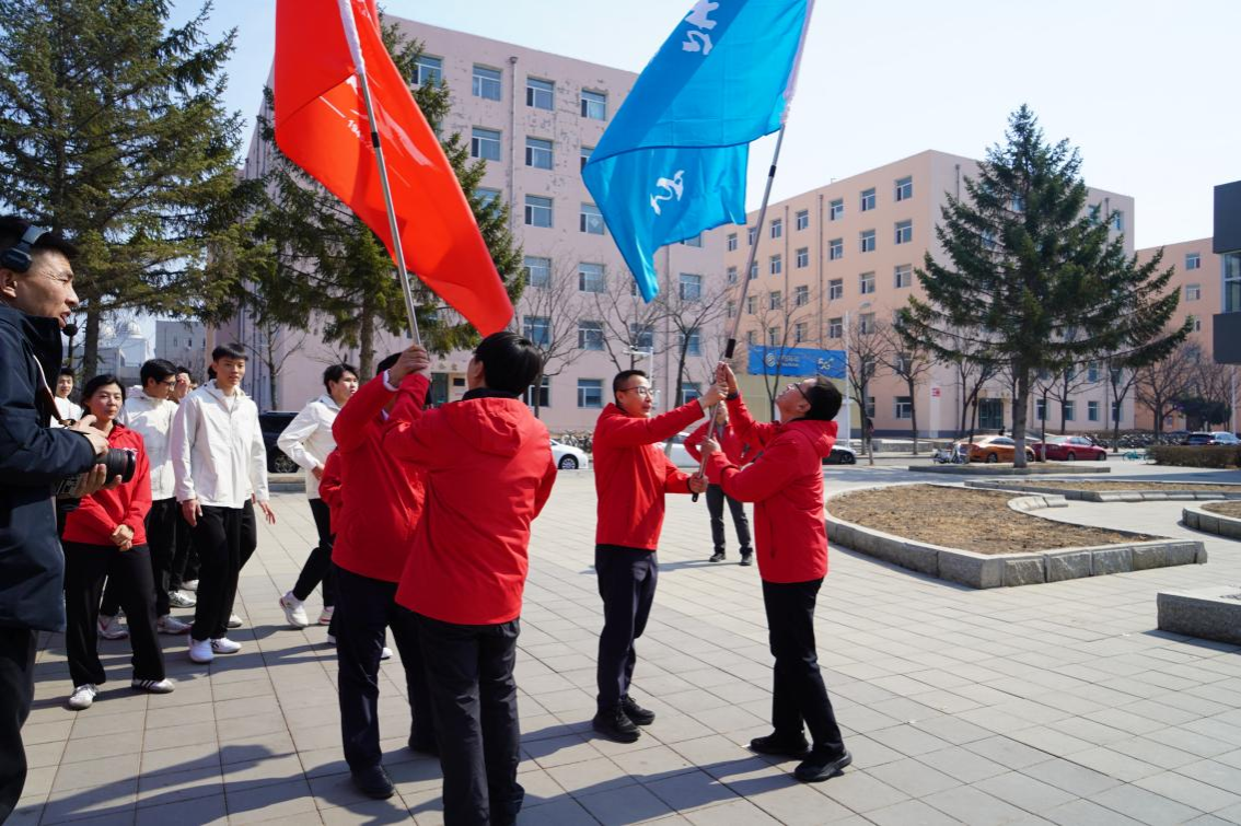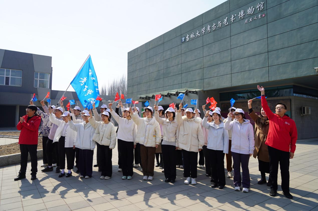 师生代表于3月31日齐聚吉林大学考古与艺术博物馆(总馆)前,共同参与吉林大学中心校区校旗传递活动,赓续吉大精神,共庆八十华诞。