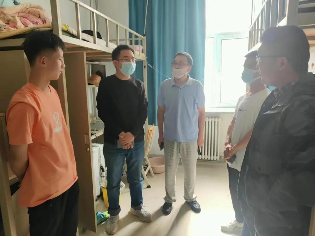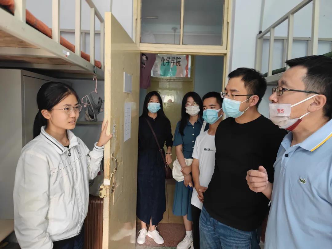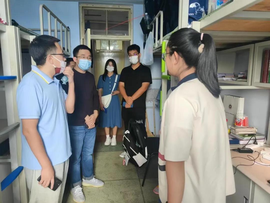 党委书记王巍老师、院长赵宾福老师,与22级辅导员邱泽涵,辅导员助理王克豪、张灵江、张凤怡、禹明岐一同前往北苑学生二公寓和南苑学生二公寓,走访看望了2022级本科新生。