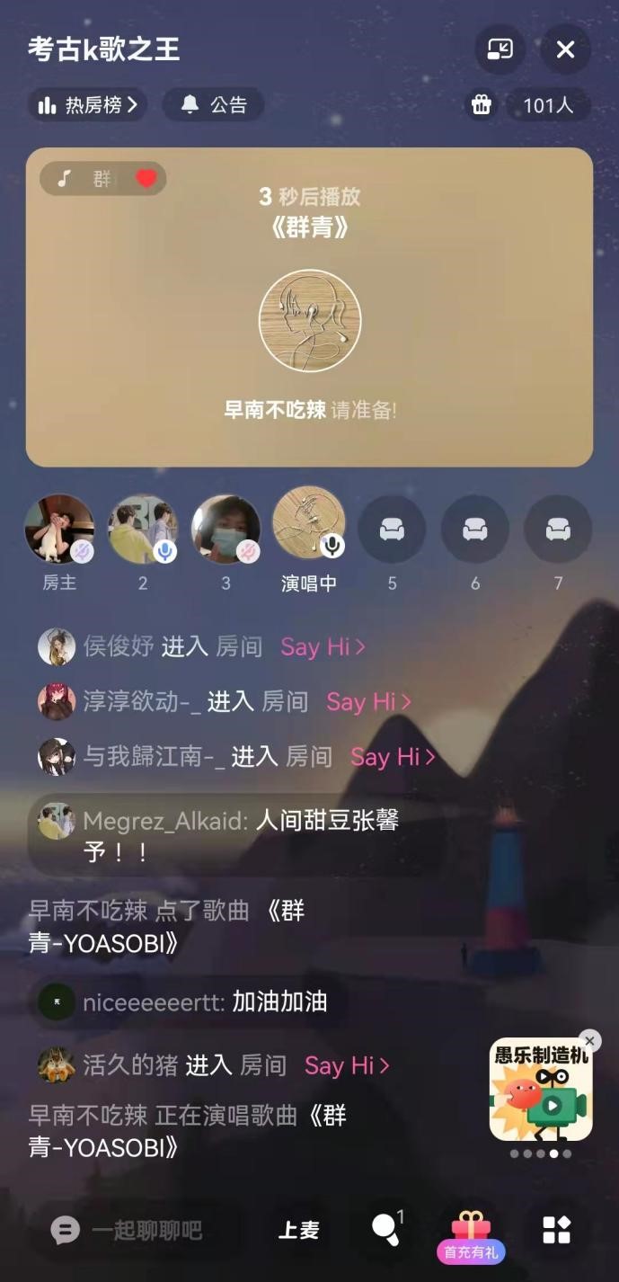 4月3日下午两点,第一届“谁是考古‘K歌之王’”线上歌唱比赛在网易云音乐的线上歌房准时开始。参赛选手们各个身怀绝技、各显其能,他们用美丽的歌声打动了在场的评委老师;“第二现场”的微信评审团也热闹非凡,观众朋友们热情高涨,不断为喜爱的选手加油打气,甚至在趣味游戏环节直接成立了“乐器组”。虽然同学们被疫情阻隔在不同空间内,见不到彼此的面容,但在线上歌房中,一首首动听的旋律久久回荡,每个人的热情都被点燃,大家纷纷抛却疫情的烦扰,敞开心灵拥抱温暖的春意,让心情如花盛开。