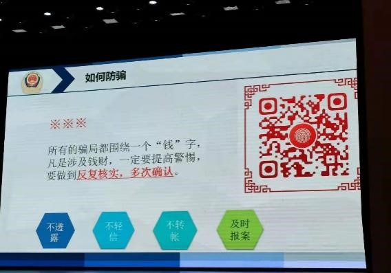 本次讲座针对时事热点全面细致讲解了防范网络电信诈骗的相关知识,对加强新生入学安全教育,强化新生的自我防护意识起到了良好的效果。活动结束时的扫二维码互动小游戏更是让新生同学们意识到安全风险无处不在。广大新生在此次报告中增长了防诈骗知识,强化了网络安全意识,提高了防诈骗能力,为今后养成良好的安全习惯,保护自身的财产与信息安全奠定了坚实的基础。