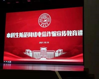为加强本科新生防范网络电信诈骗意识和能力,保障学生财产安全,我校于10月14日在鼎新大讲堂开展了防范电信诈骗宣传教育讲座。此次讲座采取线上线下相结合的方式开展,邀请了长春市公安局反诈宣讲团的高如月警官担任主讲嘉宾,为全校新生宣讲反诈骗知识。我院全体2021级本科新生积极参与,分别于线上线下同步听取了讲座。