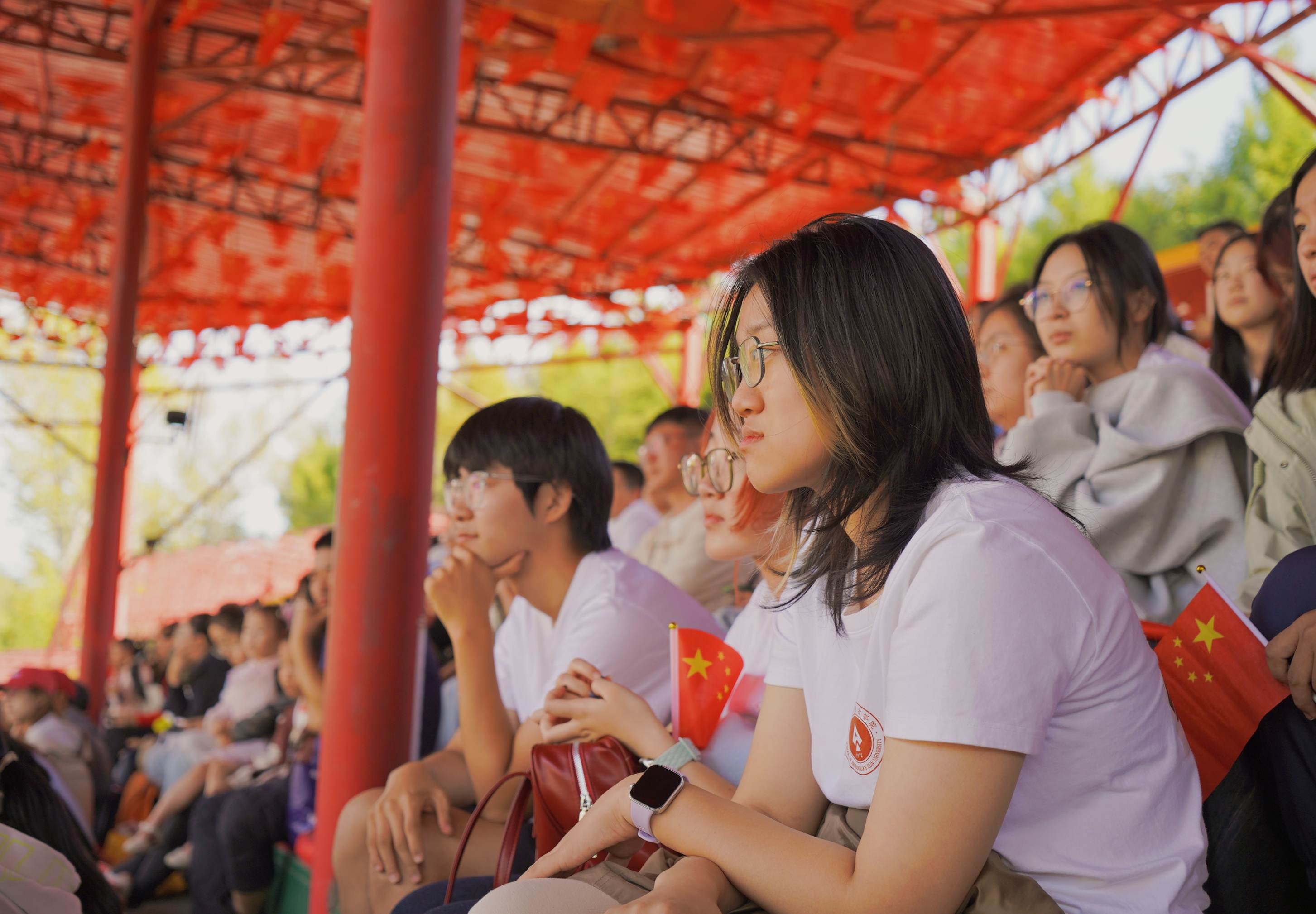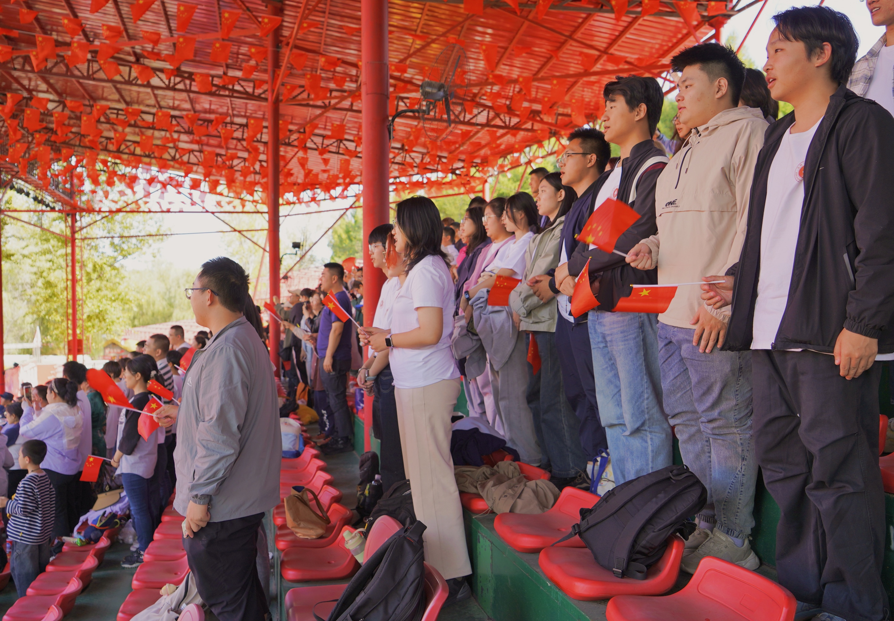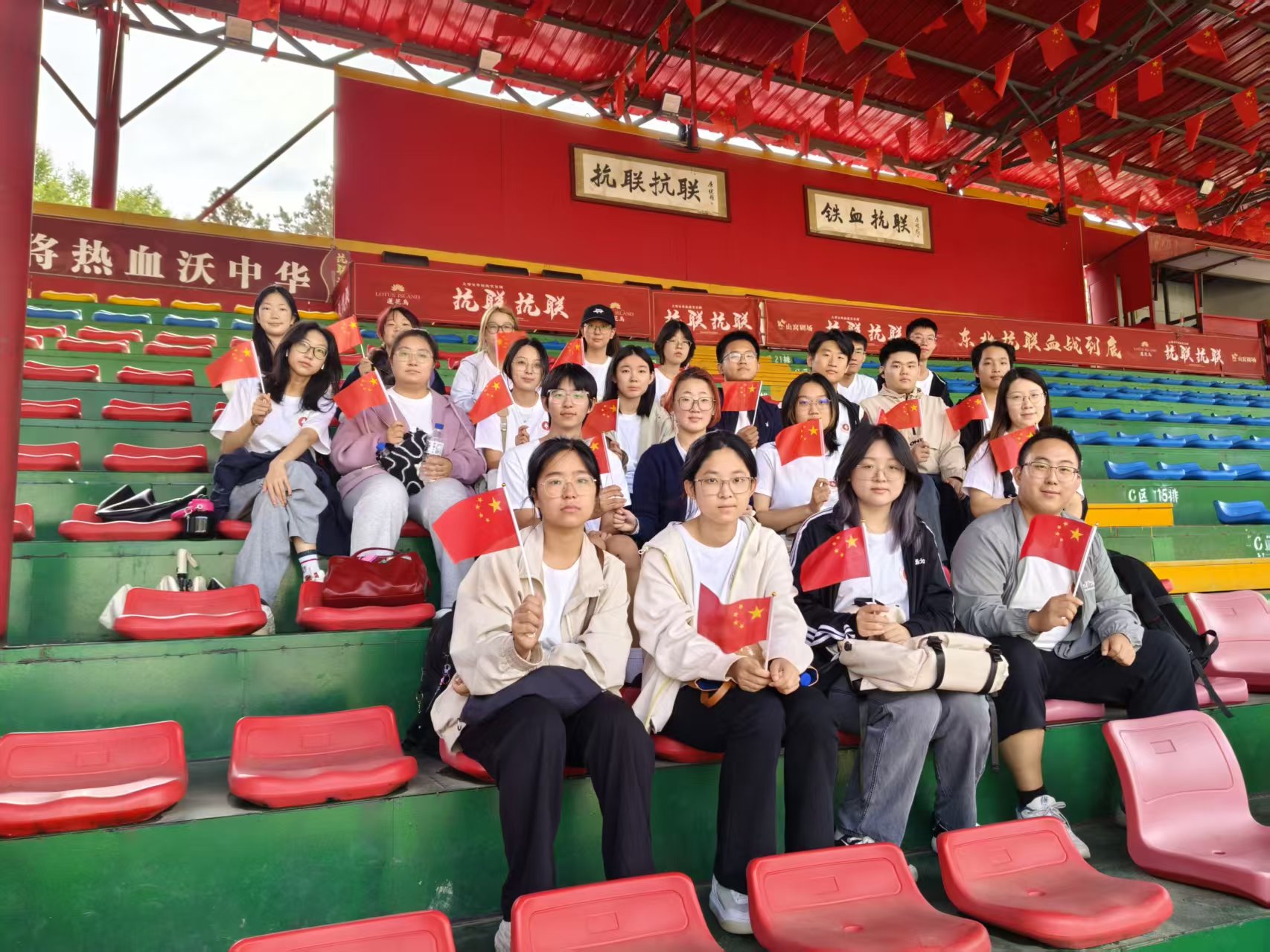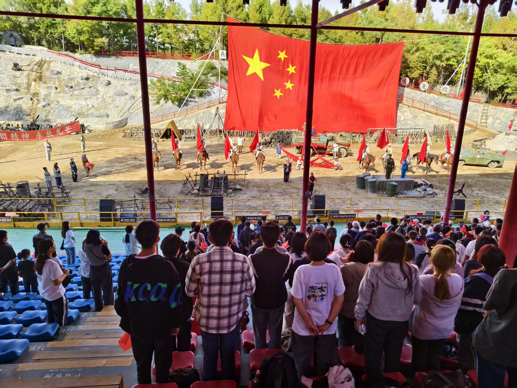 在莲花岛红色教育基地,同学们通过沉浸式学习,深刻感悟抗联岁月的艰苦与辉煌。当炮声在耳畔响起、战马呼啸而过时,历史情景剧《抗联抗联》已不仅是一场演出,更成为了一场跨越历史时空的深刻对话,以震撼的视听效果和真挚的情感表达,再现了抗联将士浴血奋战的英雄壮举。剧终全体齐唱《歌唱祖国》,歌声激昂,情感真挚,爱国情怀在每个人心中澎湃涌动。