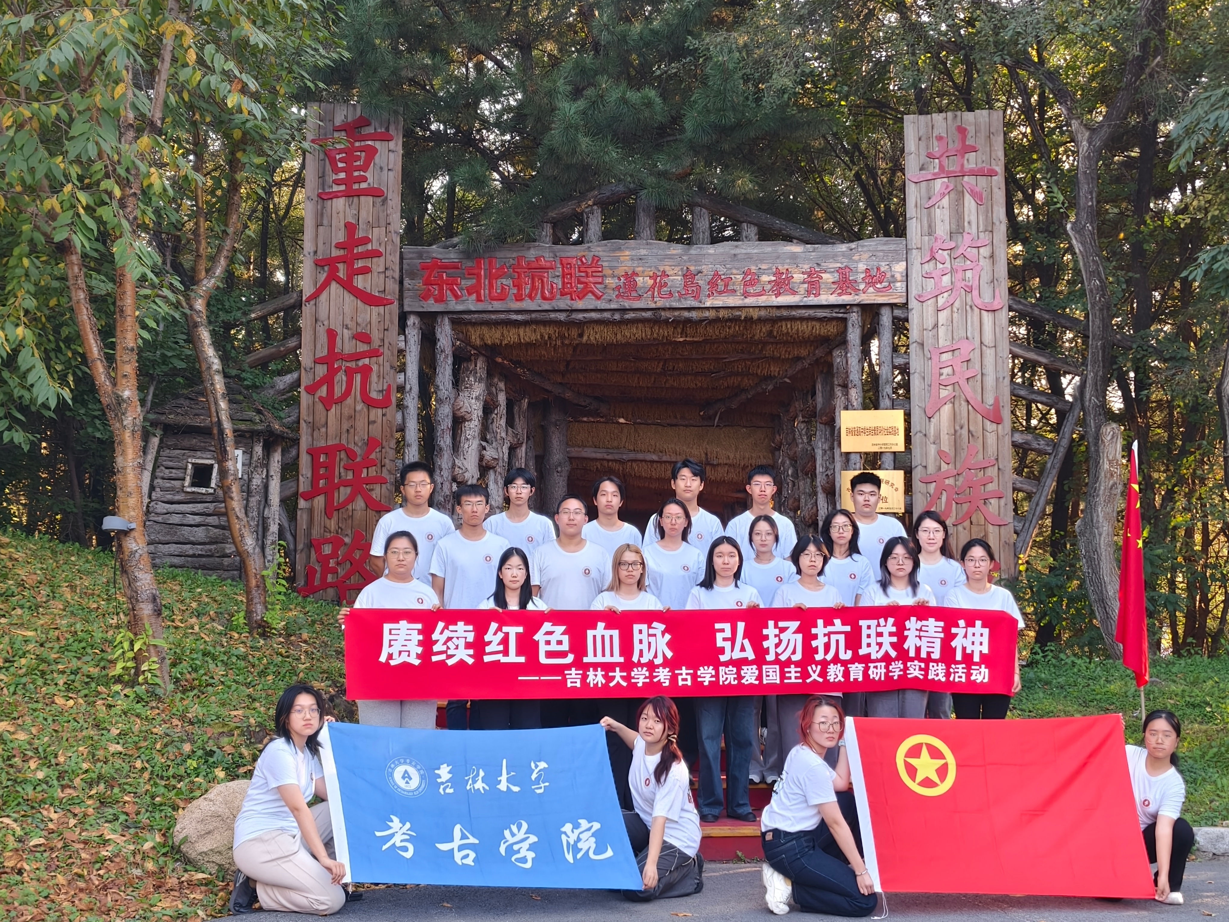 第四期团校组织M·M学习研究会、团学组织及本科生党支部成员,前往长春市莲花岛红色教育基地,开展以“赓续红色血脉,弘扬抗联精神”为主题的爱国主义教育研学实践活动。