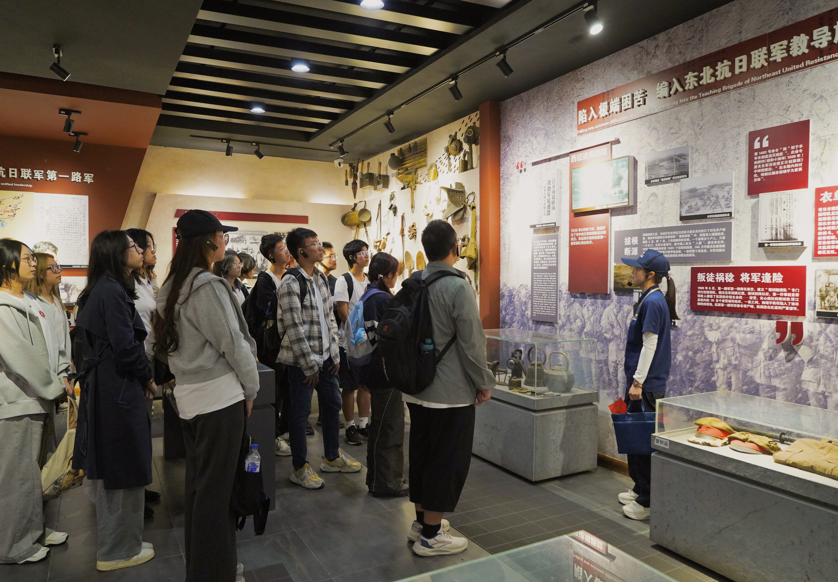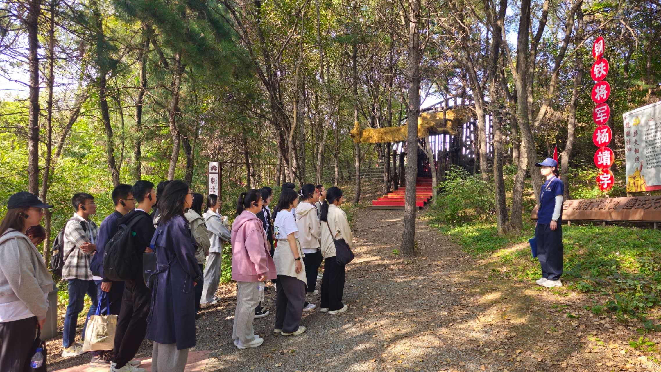 随后的“重走抗联路”体验活动,将同学们从观看者转变为亲历者。在讲解员深情的叙述中,大家沿着革命先辈的足迹,体验密林行军的艰辛,感受严寒宿营的艰苦。尤其在聆听赵一曼等烈士英勇不屈的事迹时,许多同学深受触动,热泪盈眶,仿佛触摸到了她那坚定而炽热的革命信念。走进东北抗联文化展示馆,丰富的历史图片与实物陈列,配以系统详实的讲解,帮助同学们对抗联历史脉络与精神内涵有了更加全面的认识。