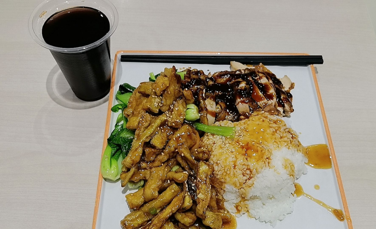 莘子园鸡排饭。打饭的阿姨非常实在,问我说“孩子你吃照烧还是奥尔良”,我说“哪个卖的好啊姨”,姨自信一笑“那必须是阿姨家的照烧味啊,虽然那个有骨头”。