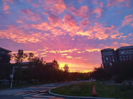 我走过很多个城市,还是认为长春的天空是格外美丽的。盛夏的长春,天空像是铺展着一种纯粹的宝石蓝色,有时会有点点碎云作装饰。在我看来,它静谧无声,却与这座城市的灵魂相契合--在历史的深厚积淀中,将所有的故事都埋藏于它宽阔的胸襟中。今年七月的一个傍晚,我看到了一场极致的天象。西边是绚烂的火烧云,赭红与金红交织流淌,泼洒出酣畅淋漓的炽烈。而在你还沉浸于火烧云的恢弘之时,回头,东边的天空中还赫然挂着一弯彩虹,它像是一支七彩的楔子,钉入时空的交界。我在站在北三公寓门口的空地上,就好像站在异世界的入口。惊羡之余,我的思绪也开始收束。此刻,我心中只升腾着一句话:在盛大辉煌的谢幕中,希望已悄然升起。最近,我陷入了一阵焦虑迷茫之中。但是慢慢地我开始冷静下来,我开始一遍一遍地反思自己,一遍一遍地询问自己,你还记得你的来时路吗?最后我只想告诉你,不要让太多的声音影响到你自己,只有你自己才能决定你是谁。还记得无数个在台灯下奋斗的你吗?那才是你的本色,不要害怕,我永远相信你,永远支持你。“绝望之为虚妄,正与希望相同”,而我也希望你可以“于无所希望中得救”。