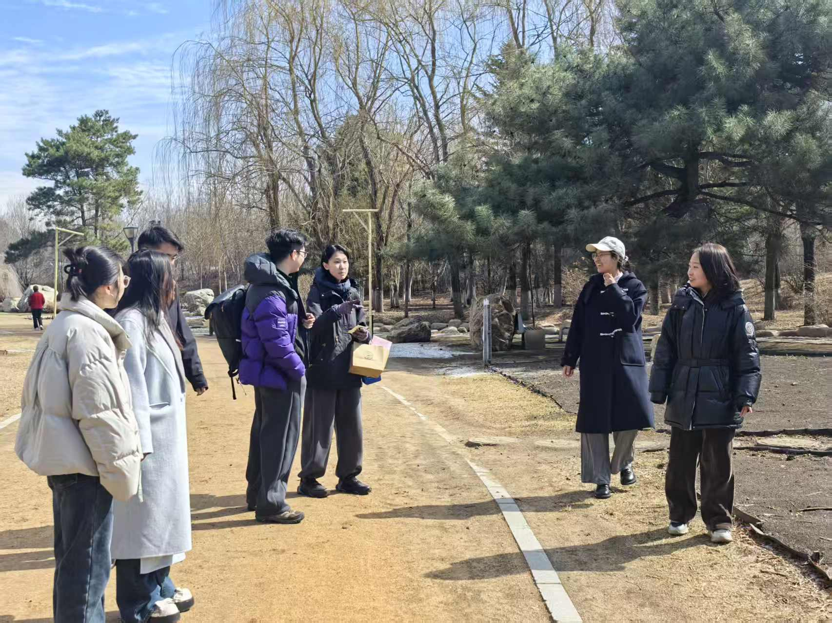 研究生会周密筹备,完成路线实地踏查、参与人员信息统计与安全预案制定,明确工作人员分工,针对人员走失、天气变化、健康突发状况等风险完善应急处置流程,为活动安全有序开展筑牢保障。当日 9时30分,参与同学在百花园西门准时集合,工作人员详细讲解活动流程、安全纪律与踏青路线,活动正式启动。